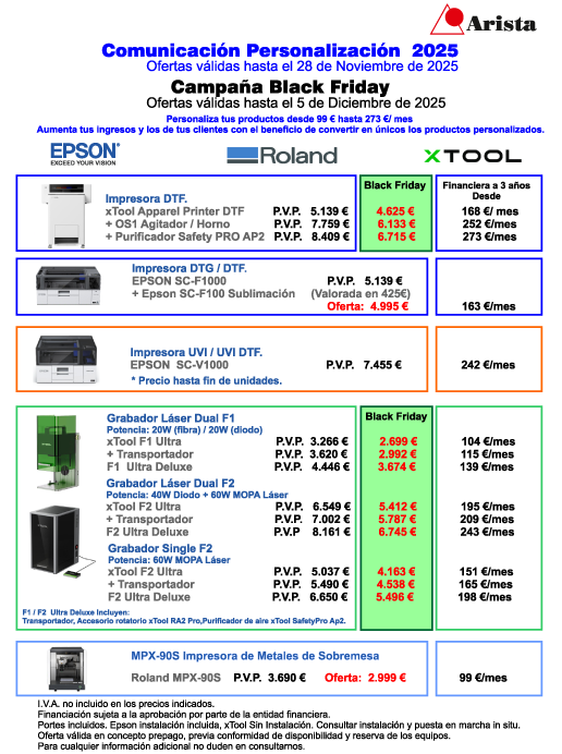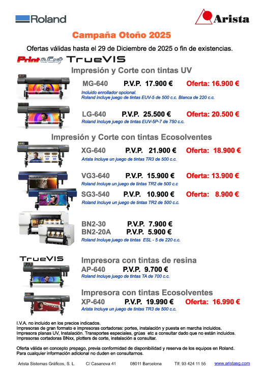Ofertas Roland Otoño 25 Descargar Oferta Personalización & Black Friday Descargar campaña DTG / DTF + Sublimación Descargar Oferta ¡¡PRORROGADA !! . Roland MDX 50 Descargar Oferta