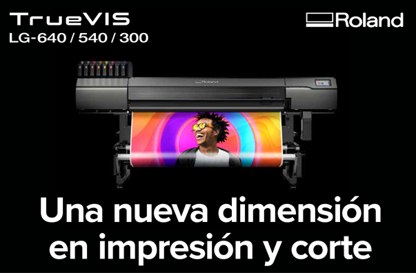 TrueVIS LG Series. Dos cabezales de impresión, tres modelos LG-640 1625, LG-540 1371 y LG-300 762 mm.